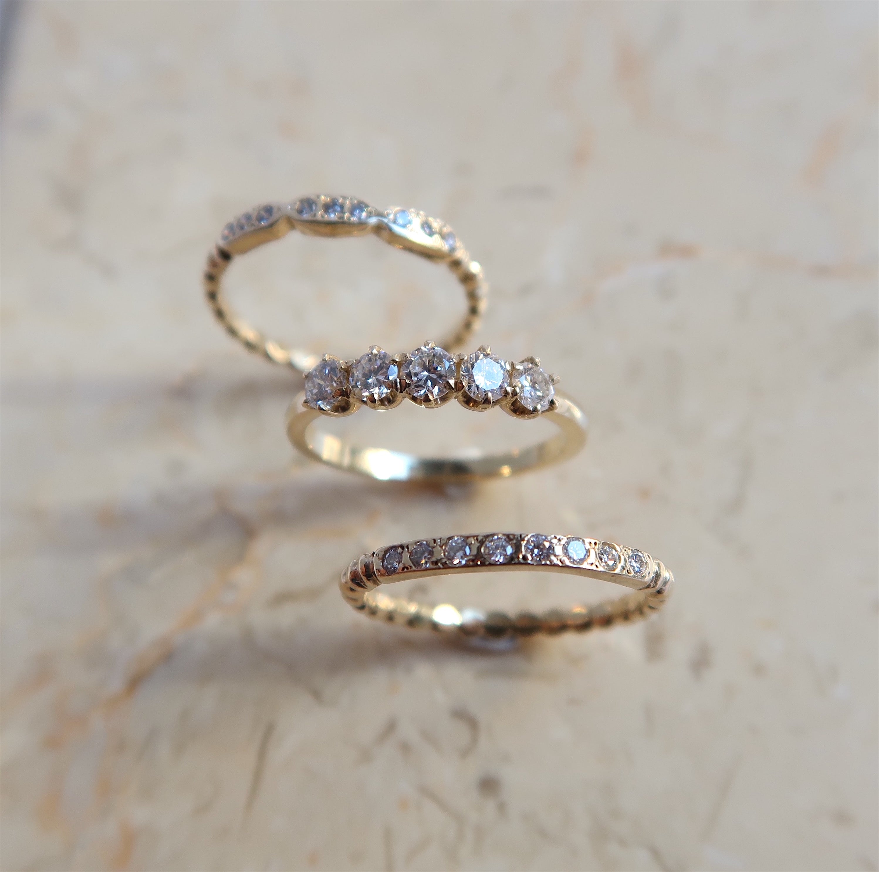 One of a kind pieces, handmade with natural diamonds sourced from antique and post consumer pieces.
